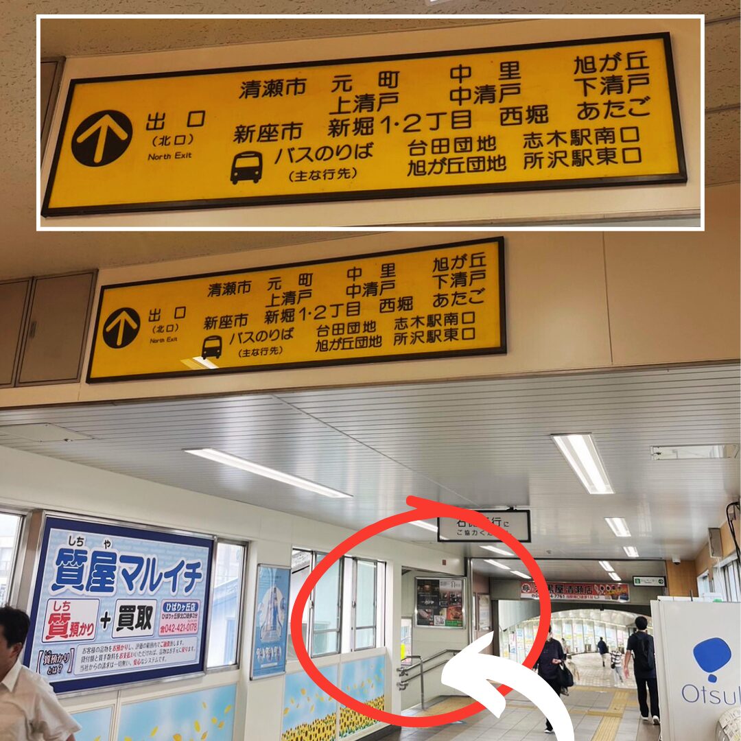 清瀬駅の改札を出たら北口に向かい、左側の階段を降ります。