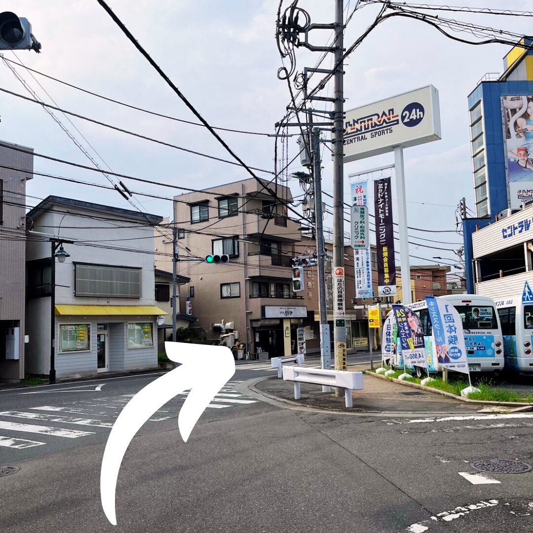 交差点を「セントラルスポーツ」の方に向かって右折し、小金井街道に向かいます。